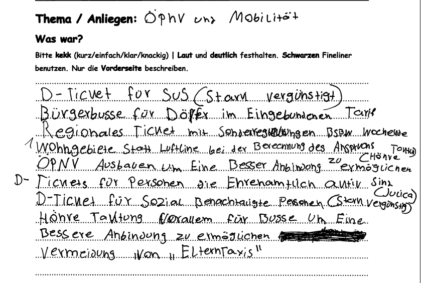 Der LK Stade ist ein suburbaner Raum und daher eher schlecht mit ÖPNV ausgestattet. Besonders je weiter man in die ländlichen Regionen und Dörfer geht. Dies ist nicht nur ein generelles Problem. Sondern auch im speziellen für die Jugendarbeit. Die Wege sind lang und das ÖPNV-Netzwerk schlecht. Nicht selten haben Busse und Bahnen Verspätung oder fallen aus - wenn denn überhaupt welche fahren. Jugendliche schränkt dies stark in ihrer Freizeitgestaltung ein. Sie haben wenig bis keine Möglichkeiten zuverlässig zu Jugendangeboten, Hobbys, Vereinen, Sport, Freizeithäusern und -räumen oder privaten Verabredung zu kommen. Neben dem strukturellen Problem kommt ein finanzielles dazu. Die Tickets werden teurer, nicht jede Familie kann sich ein oder mehrere Tickets leisten. Es gibt die Schülertickets, allerding nur ab einem Radius von 3km Luftlinie (Nicht tatsächlicher Weg!) von der Schule und bis zur 10. Klasse. Die höheren Jahrgänge und näher wohnenden Schüler*innen sollten ebenfalls eine Möglichkeit bekommen ihre Freizeit zu gestalten. Die Gruppe hat folgende Ideen und Problematiken ausgearbeitet: