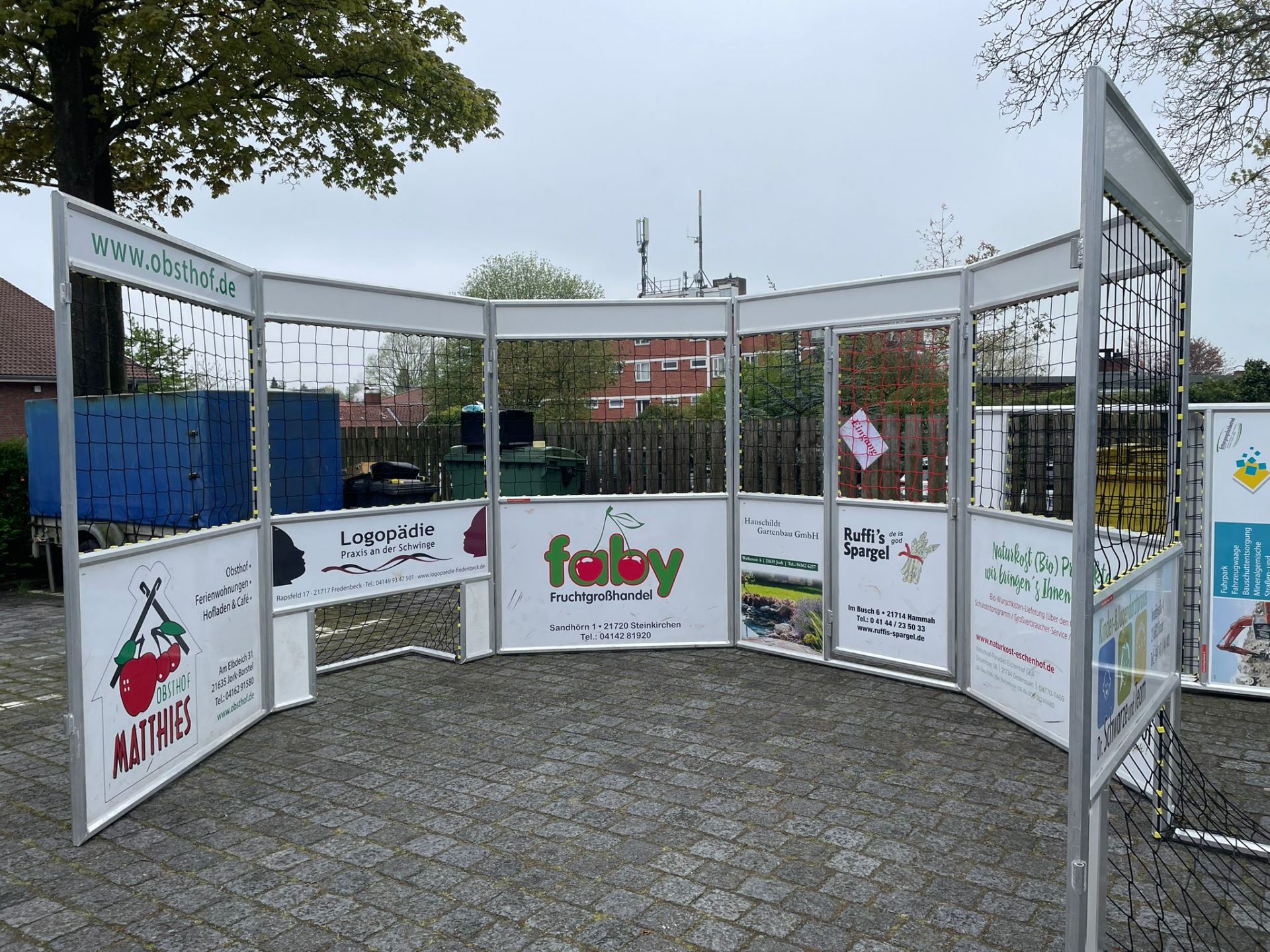 Der Fußball-Parcours gehört der Sportjugend Stade. Als KJR übernehmen wir den Verleih für die Sportjugend. Wir bedanken uns bei allen Sponsoren, die die Anschaffung des Hängers ermöglicht haben. Der Hänger ist nur mit Hänger-Führerschein BE zu fahren. Er ernthät den Fußball-Käfig (siehe Bild). Außerdem eine Torwand und eine Rampe und Korb zum Fußball-Zielschießen.
